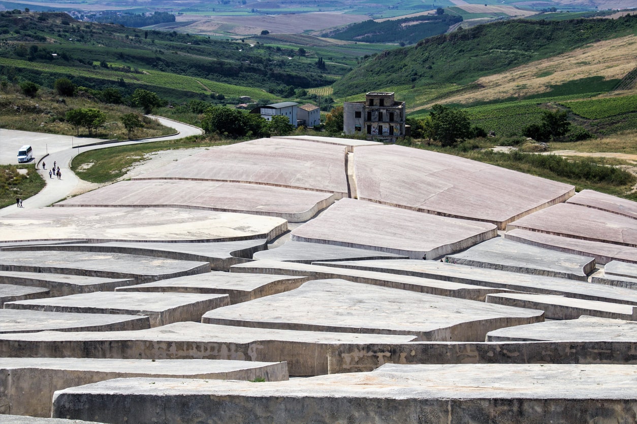 Le nuove città sorsero in punti diversi rispetto ai nuclei originari, e ancora oggi i centri storici abbandonati sono scheletri sospesi nel tempo. Visitare la Valle del Belìce, dunque, non è entrare nel museo di un disastro, ma conoscere un territorio lentamente e con rispetto. Gibellina – che nel 2026 sarà Capitale dell’Arte Contemporanea – è il luogo simbolo di questa storia: sulle rovine sorge il Cretto di Alberto Burri, una colata di cemento bianco che ricopre l’antico impianto urbano, lasciando emergere i tracciati delle strade come fossero delle fenditure.